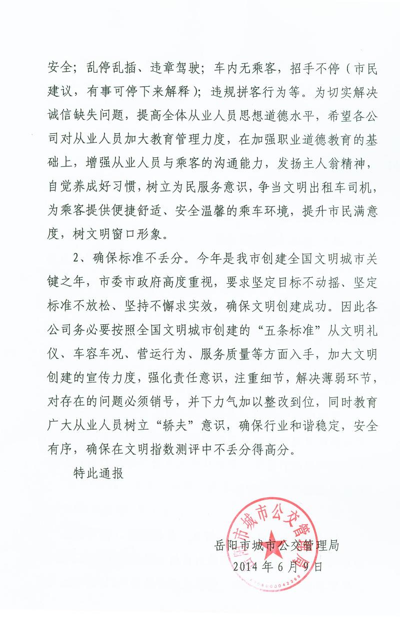 局按实际情况纳入本月各企业服务质量信誉考核,各公司应高度重视暗访中发现的问题,要严格按照管理规定,对存在的问题进行整改,并对从业人员进行学习教育和考核,规范其经营行为。