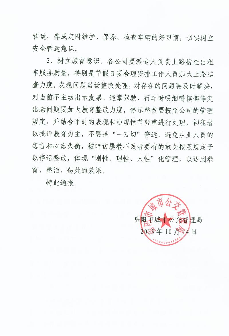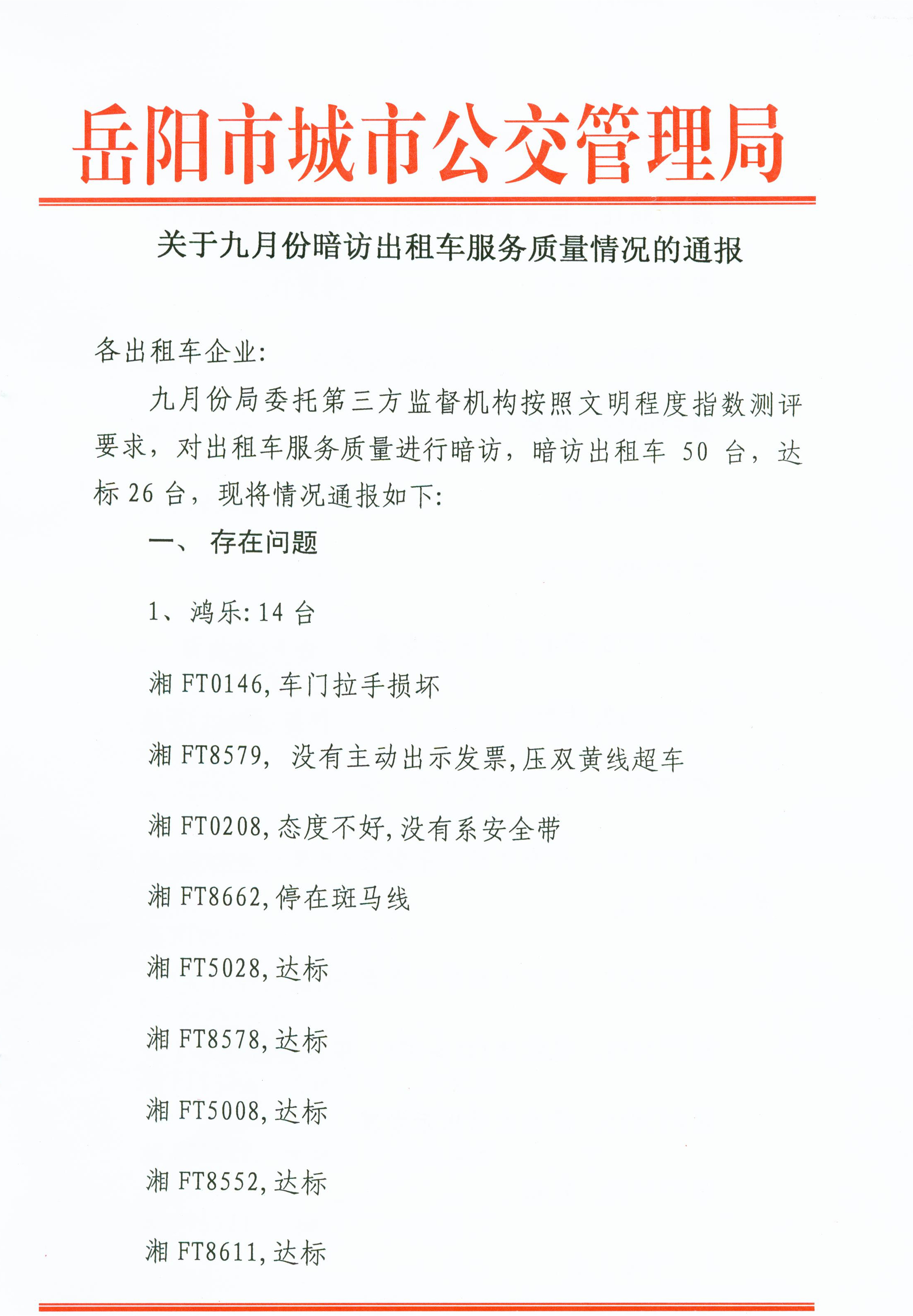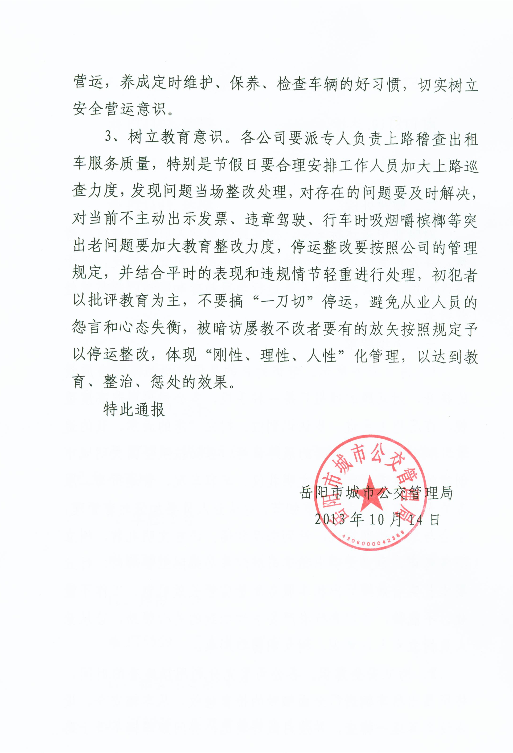1、树立服务意识。暗访的目的是促进出租车服务质量的提升,对问题的通报只是一种手段,各公司要引起高度重视,在思想上要进一步认识到位。树立“您的满意、我的追求”服务理念,是我局的最终目标,务必按照全国文明城市创建的“五条标准”从文明礼仪、车容车况、营运行为、服务质量等方面入手,注重细节,对从业人员要加强教育管理,学会与乘客沟通交流,做到态度和蔼,语言文明礼貌,树立服务意识,争当文明出租车司机;务必按照主管部门、行业要求扎实有效搞好出租车服务质量监管长效机制,工作不能软、不能松,通过高标准严要求和细致的关心帮助,让从业人员树立主人翁意识,树文明窗口形象。