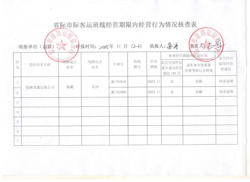 关于湖南临湘龙鑫运输有限责任公司临湘至长沙班线湘F92918、湘F92088延续经营的公示