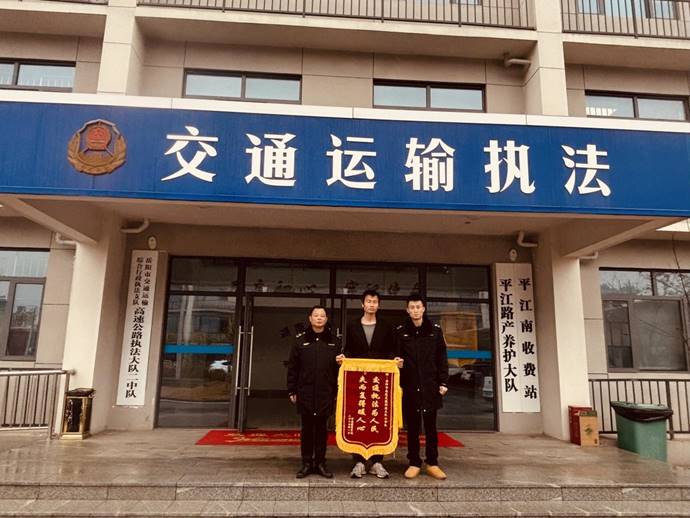 2月6日上午,河南籍货车司机苟师傅专程来到市交通运输综合行政执法支队高速公路执法大队二中队,赠送一面写有“交通执法为人民、失而复得暖人心”的锦旗,感谢执法人员的及时帮助。