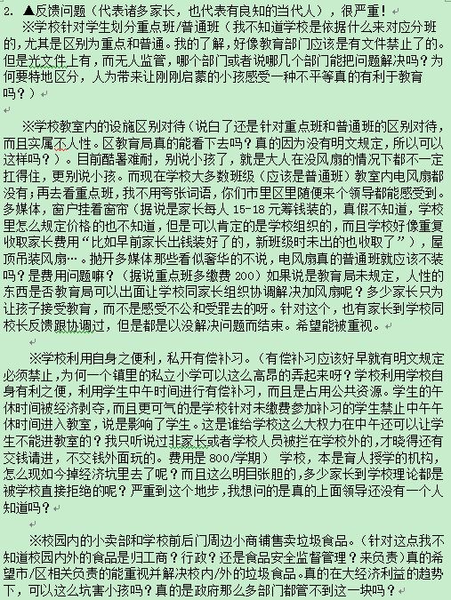 (还有伙食强制搭餐收费。校车收费及校车人员严重超载。乱征订教辅资料,开学的时候每人强制买的资料。家教家养十分严重,每个学生每期900,大面积发动。办重点班,多收费用4,侵占生均公用经费。