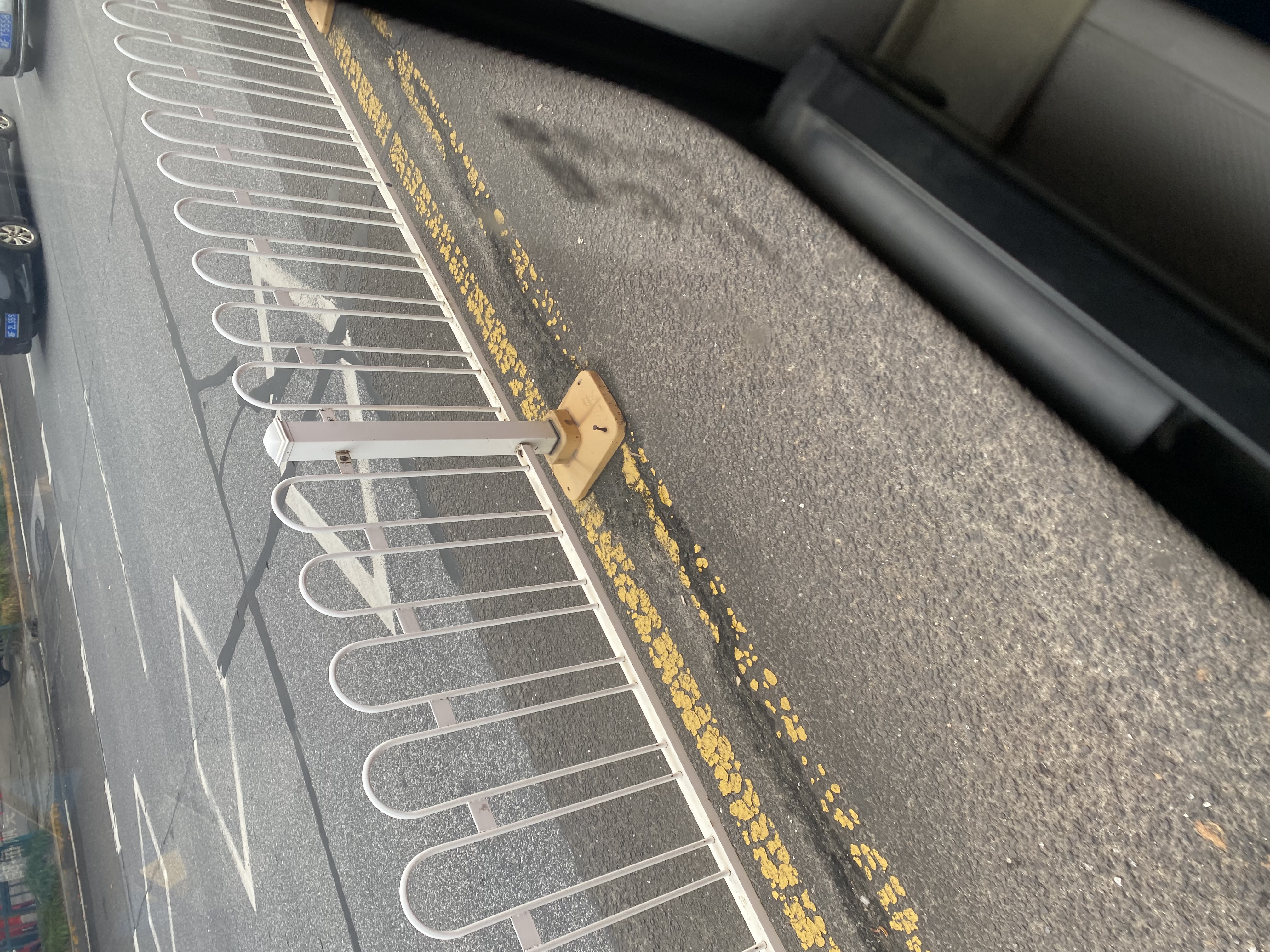 标题: 道路中间隔离带护栏固定桩钉子外露